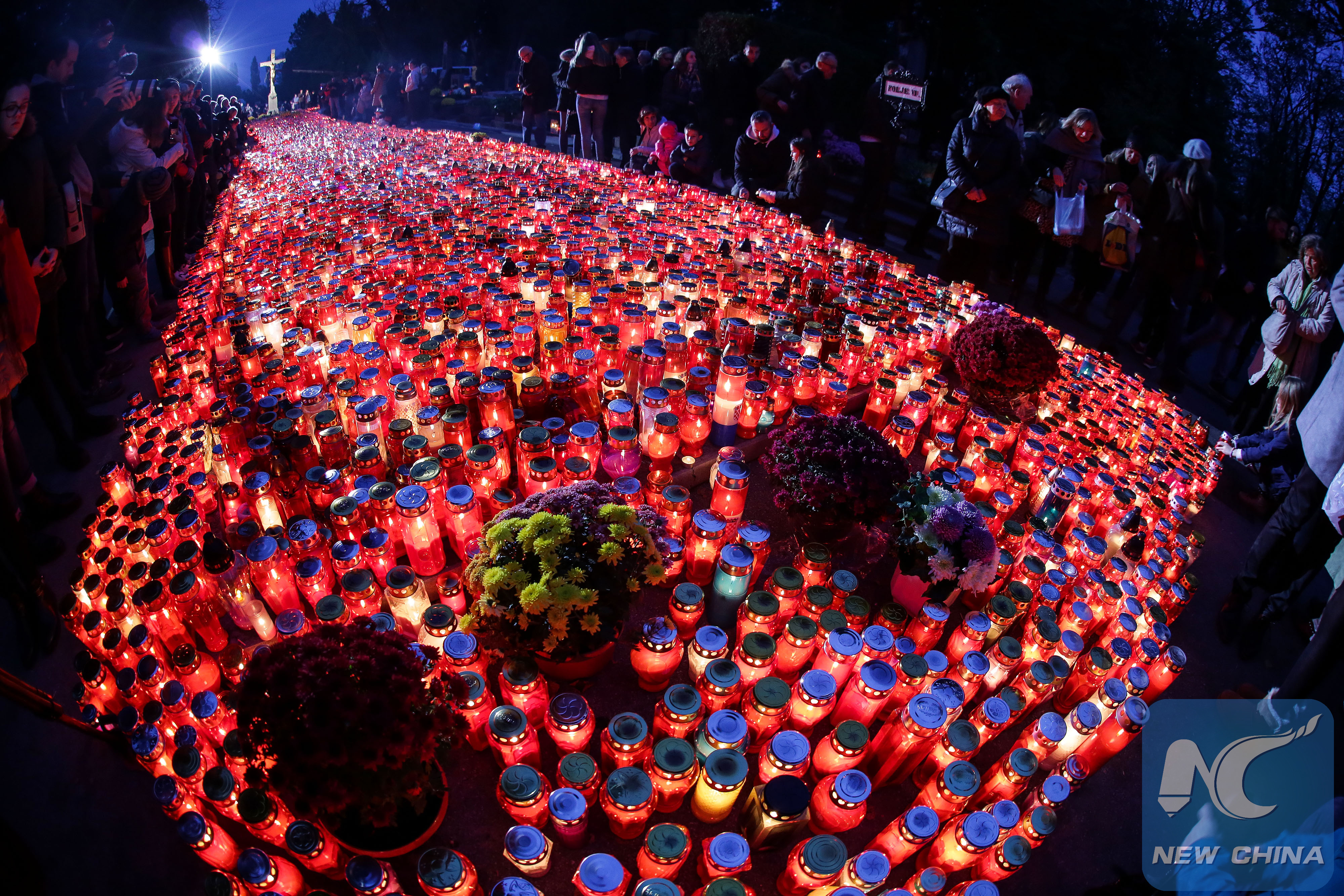 People pay their respects to the deceased at the Mirogoj Cemetery in Zagreb, Croatia, on Nov. 1, 2019. (Marin Tironi/Pixsell via Xinhua)