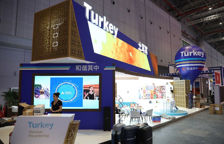 The Turkey Pavilion is seen at the second China International Import Expo (CIIE) in Shanghai, east China, Nov. 2, 2019. The construction of country pavilions at the second CIIE has been completed. (Xinhua/Fang Zhe)
