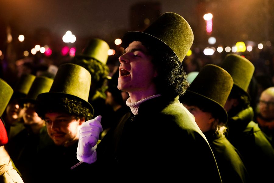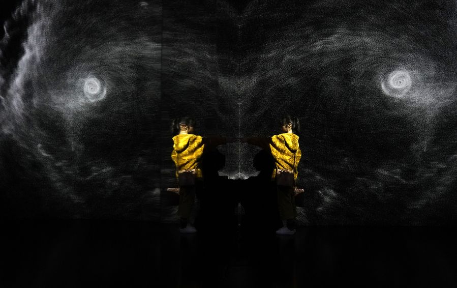 Artists perform during a choreographic performance on Pushkin Square in Moscow, Russia, on Nov. 3, 2019. (Photo by Maxim Chernavsky/Xinhua)
