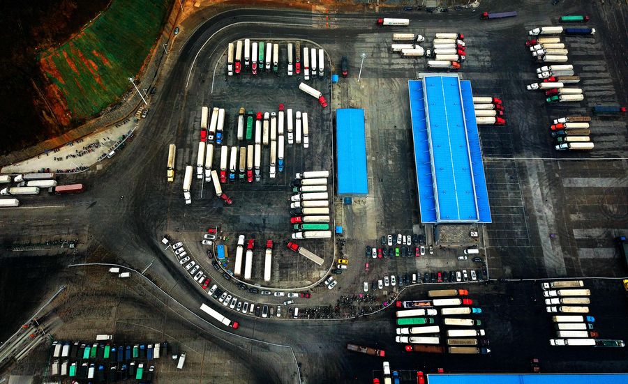 Trucks from ASEAN countries wait at a border supervision center in Pingxiang City of south China's Guangxi Zhuang Autonomous Region, Jan. 16, 2018. (Xinhua/Zhang Ailin)