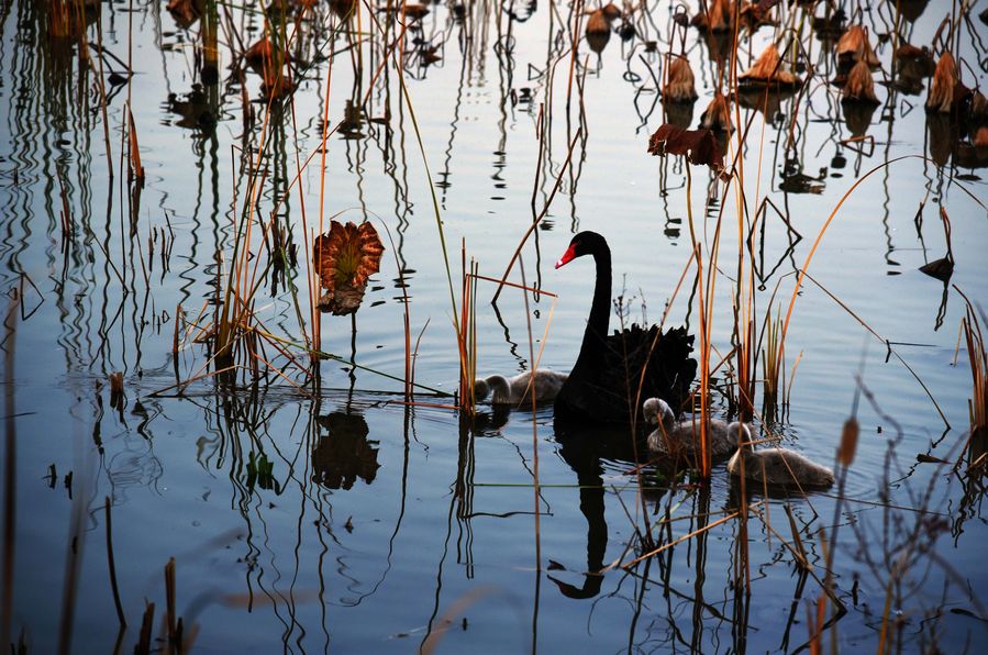 Photo taken on Nov. 18, 2019 shows swans at the Jixi national wetland, located in western Jinan, east China's Shandong Province.(Xinhua/Wang Kai)