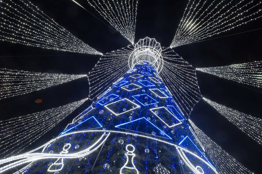 The main Christmas tree is lit up at Cathedral Square in Vilnius, Lithuania. (Photo by Alfredas Pliadis/Xinhua)