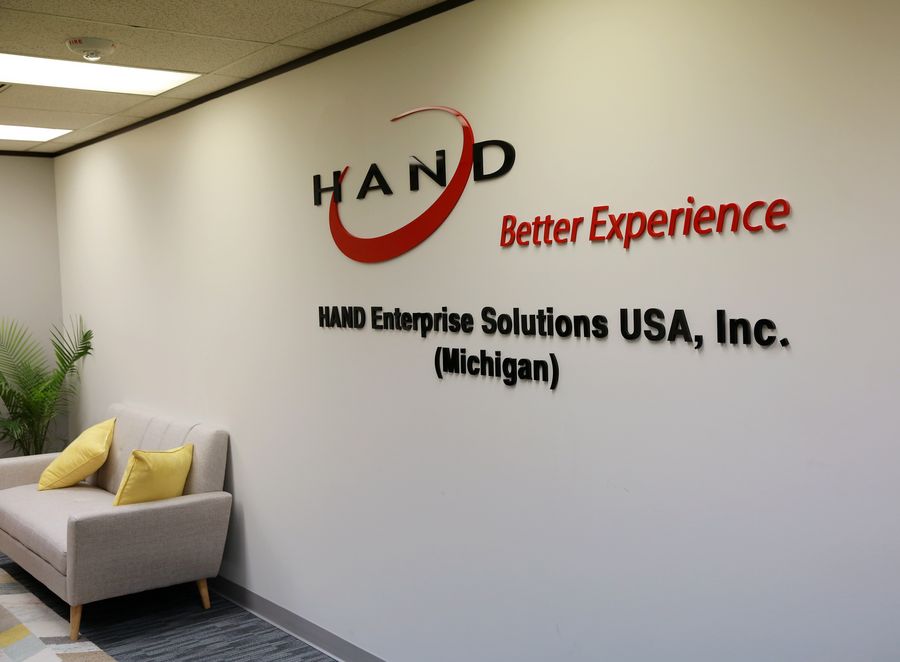 Photo taken on Nov. 14, 2019 shows the office of HAND Enterprises Solutions USA Inc. in the suburb area of Detroit, the United States. (Xinhua/Wang Ping)