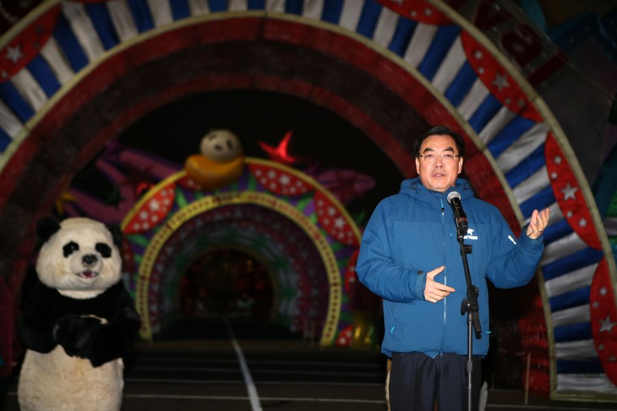Illuminated lanterns are seen at the Hello Panda Festival at Citi Field baseball park in New York, the United States, on Dec. 6, 2019. (Xinhua/Qin Lang)