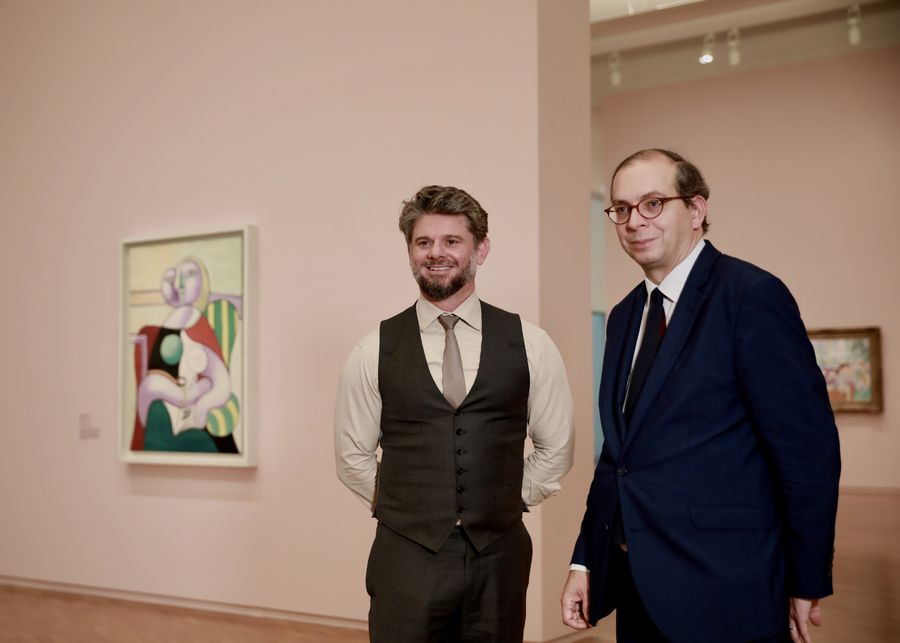 NGA director Nick Mitzevich (left) and Laurent Le Bon (right), director of the Musee Picasso in Paris, Dec. 11, 2019. (Xinhua/Chu Chen)