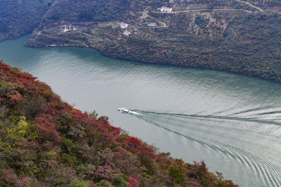 A ship sails through the Wuxia Gorge, one of the Three Gorges on the Yangtze River, in Wushan County, southwest China's Chongqing Municipality, Nov. 23, 2019. (Xinhua/Wang Quanchao)