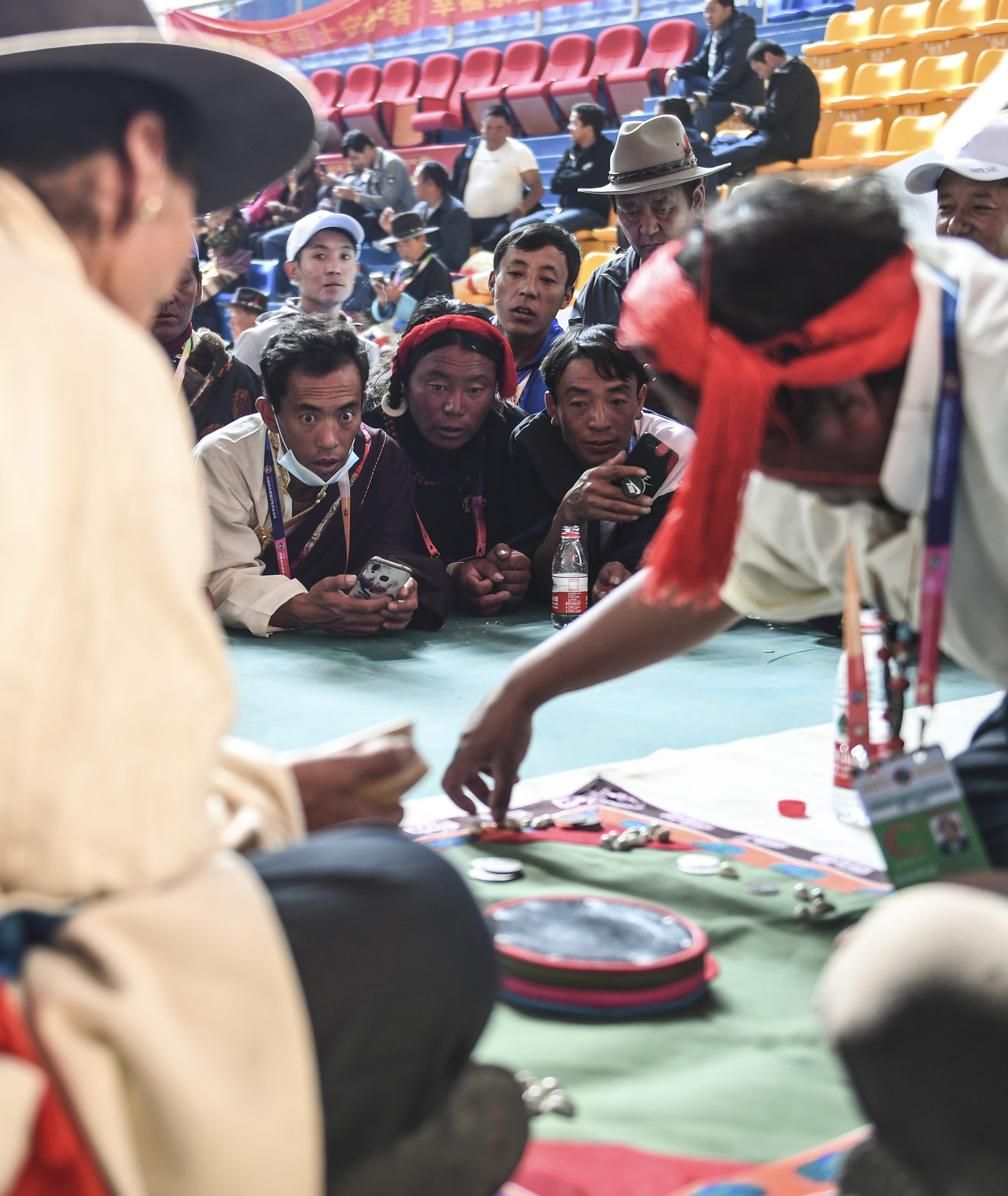 People watch a dice match during the games for local farmers and herdsmen in Xigaze, southwest China's Tibet Autonomous Region, Aug. 30, 2019. (Xinhua/Jigme Dorje)
