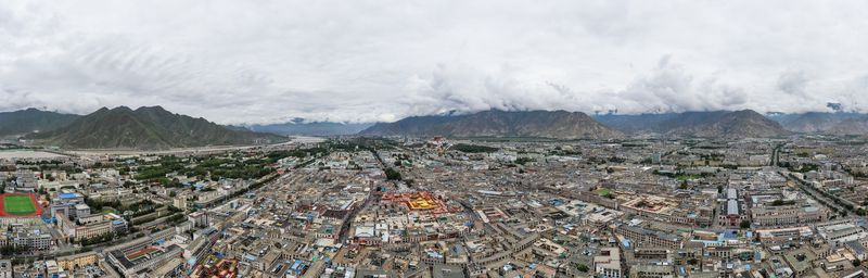 Stitched aerial photo taken on Aug. 10, 2019 shows the view of Lhasa, capital city of southwest China's Tibet Autonomous Region. (Xinhua/Wang Jianhua)