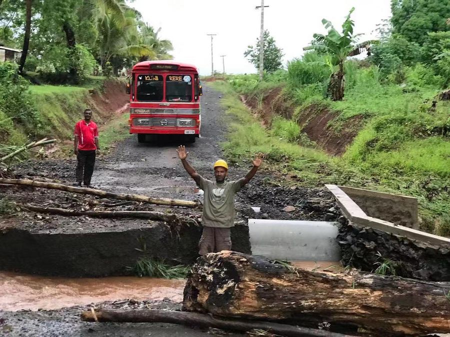A bridge is damaged near a village in Labasa on Vanua Levu, Fiji's second largest island, Dec. 28, 2019.(FIJI SUN/Handout via Xinhua)