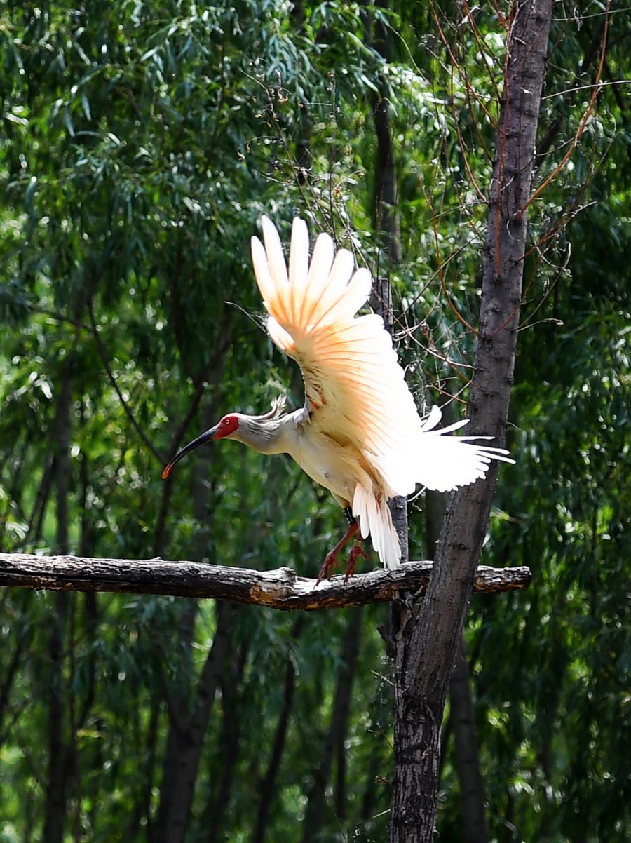 The crested ibis population has been increasing since then with the joint protection work between China and Japan. China started captive breeding of crested ibises in 1991, breeding more than 400 birds in Shaanxi and expanding their habitats. China now has more than 3,000 crested ibises.