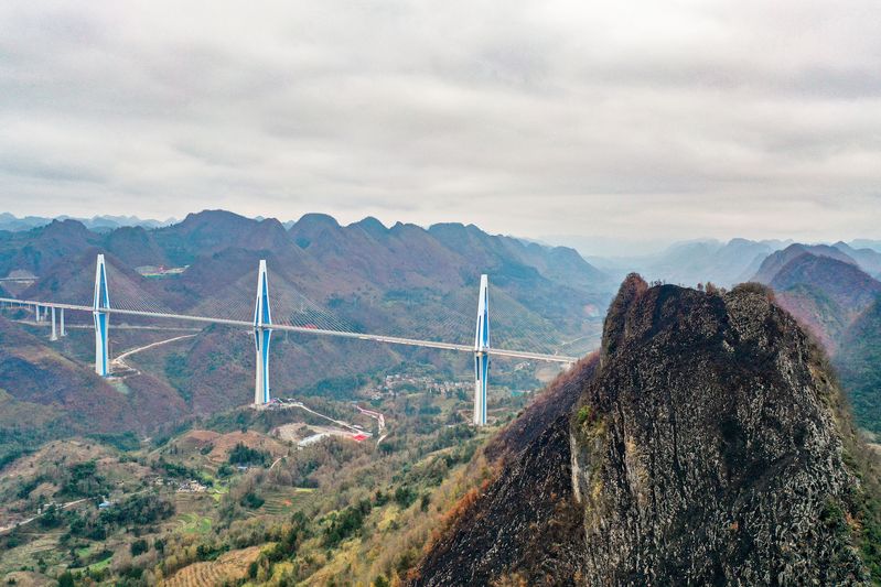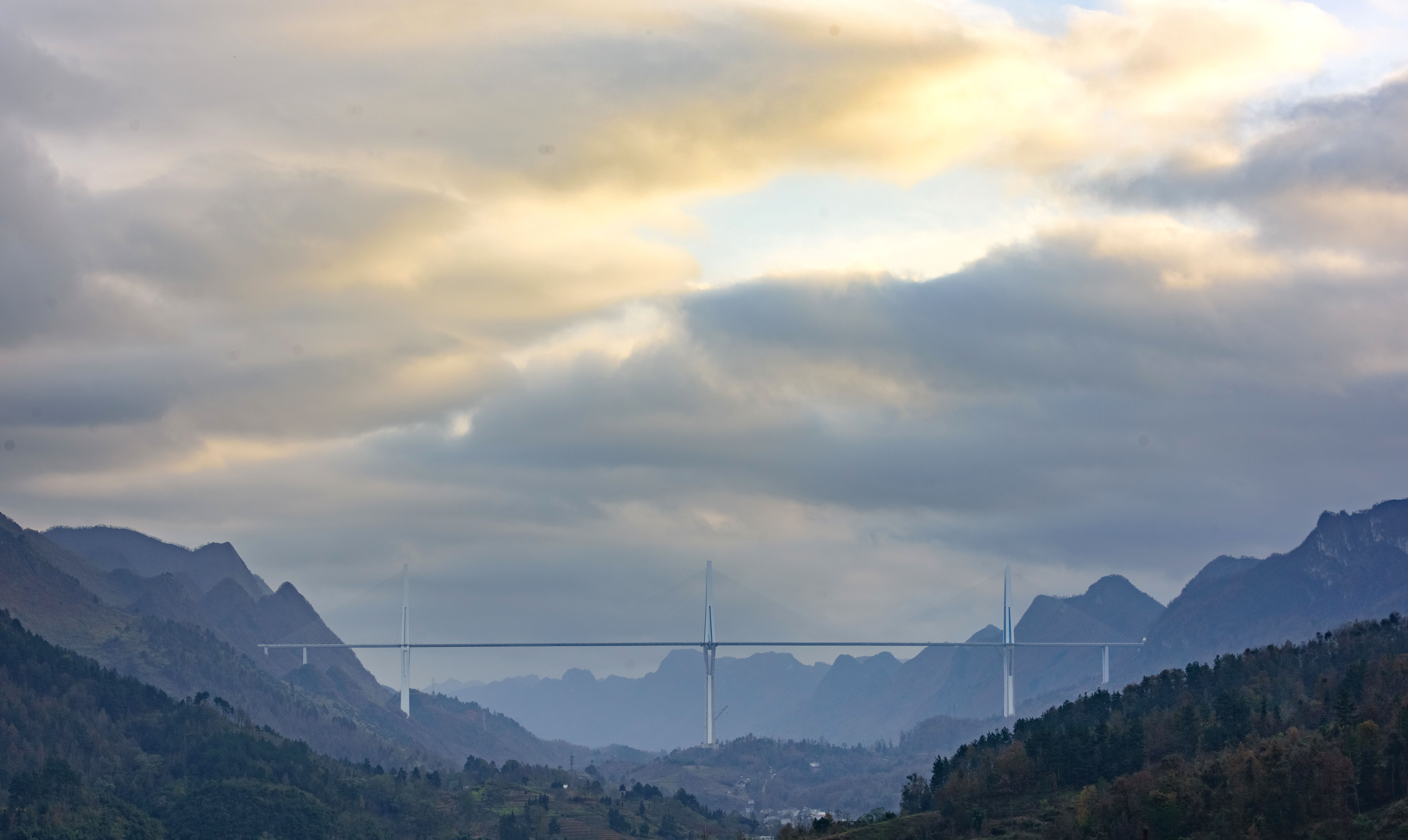 Located in Bouyei-Miao Autonomous Prefecture of Qiannan, the bridge, a colossal cable-supported viaduct with a span of 2,135 meters, will serve as a major connection on the Pingtang-Luodian Expressway above the Caodu River Canyon.