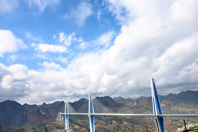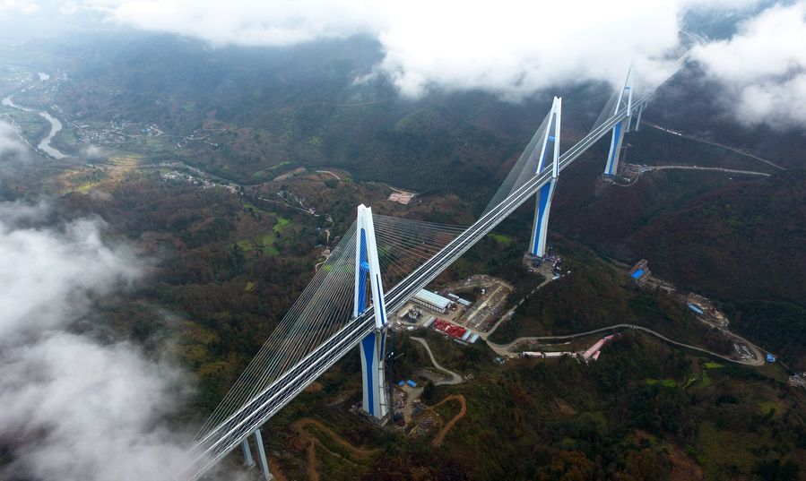 Located in Bouyei-Miao Autonomous Prefecture of Qiannan, the bridge, a colossal cable-supported viaduct that spans 2,135 meters across a canyon, will serve as a major connection on the Pingtang-Luodian Expressway.