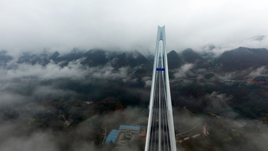 Aerial photo taken on Dec. 30, 2019 shows the Pingtang Bridge in southwest China's Guizhou Province. (Xinhua/Liu Xu)