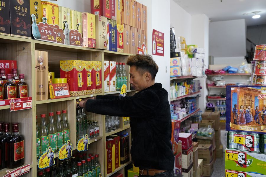 Ex-fisherman Zhang Laixi works at his convenient store in Maanshan, east China's Anhui Province, on Jan. 8, 2020. TO GO WITH XINHUA HEADLINES OF JAN. 9, 2020. (Xinhua/Qu Yan)