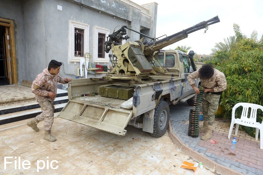 Fighters of UN-backed government forces in Southern Tripoli, Libya, on Jan. 12, 2020. (Xinhua/Hamza Turkia)