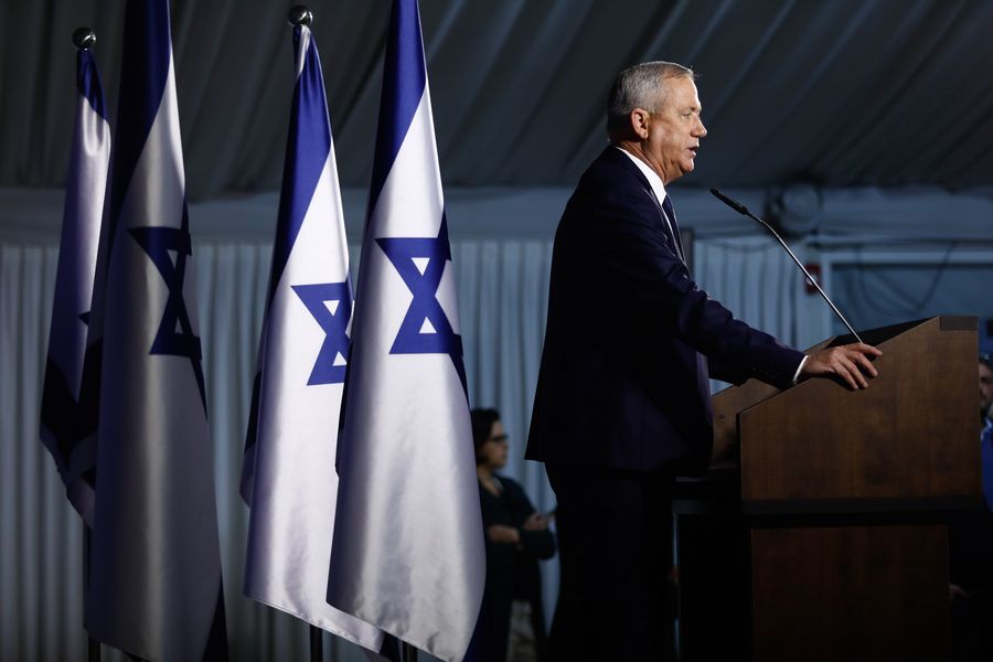 Israel's Blue and White party leader Benny Gantz speaks during a press conference in Tel Aviv, Israel, Jan. 25, 2020. Benny Gantz, the main political rival of Israeli Prime Minister Benjamin Netanyahu, announced on Saturday that he will meet U.S. President Donald Trump in Washington to discuss a Mideast peace plan. (Tomer Neuberg/JINI/Handout via Xinhua)