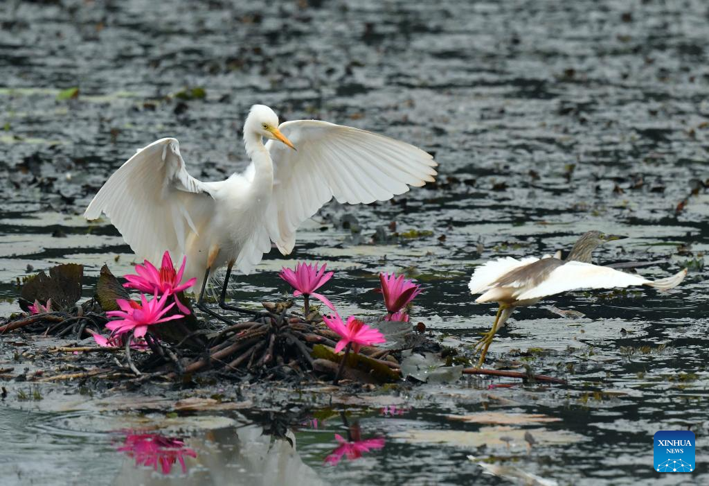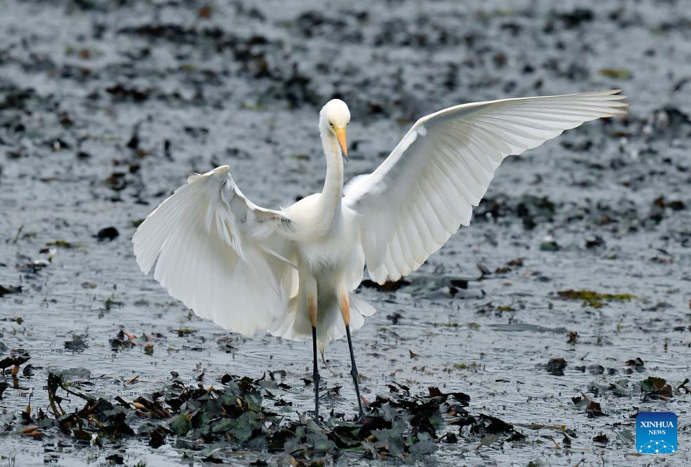 A great egret is pictured in a wetland area near Colombo, Sri Lanka, on Feb. 15, 2026. (Photo by Ajith Perera/Xinhua)