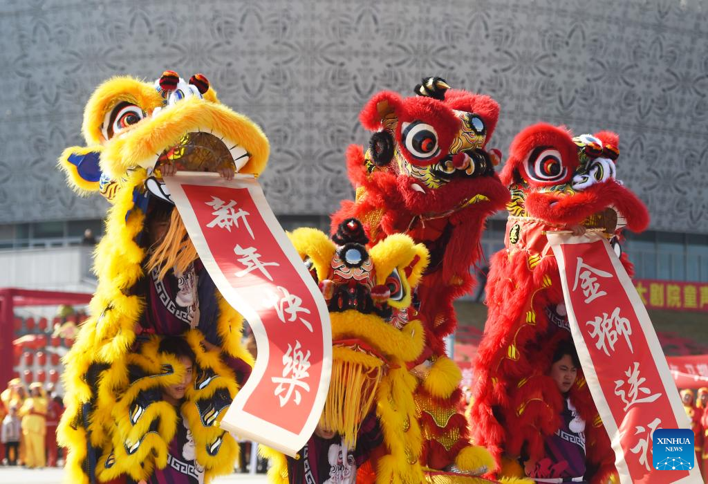 People watch a lion dance performance in Lanzhou, northwest China's Gansu Province, Feb. 18, 2026. During the Spring Festival, various folk activities and performances are held across China. (Photo by Hou Chonghui/Xinhua)