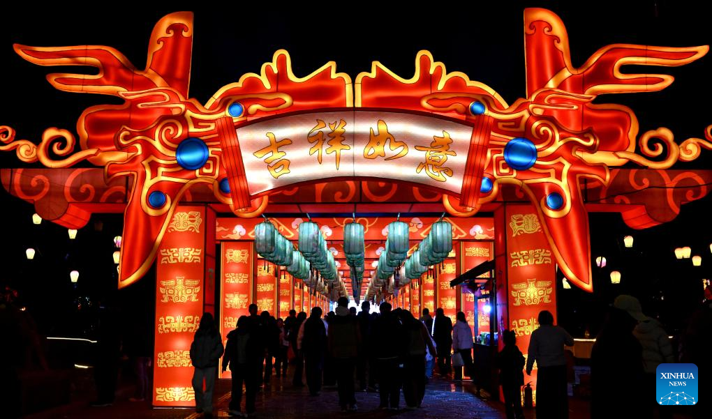 Tourists visit a themed lantern exhibition at a botanical garden in Luoyang City, central China's Henan Province, Feb. 19, 2026. China's Ministry of Culture and Tourism launched a month-long cultural and tourism campaign ahead of the Spring Festival, featuring a wide range of activities and promotional measures to better meet people's needs.