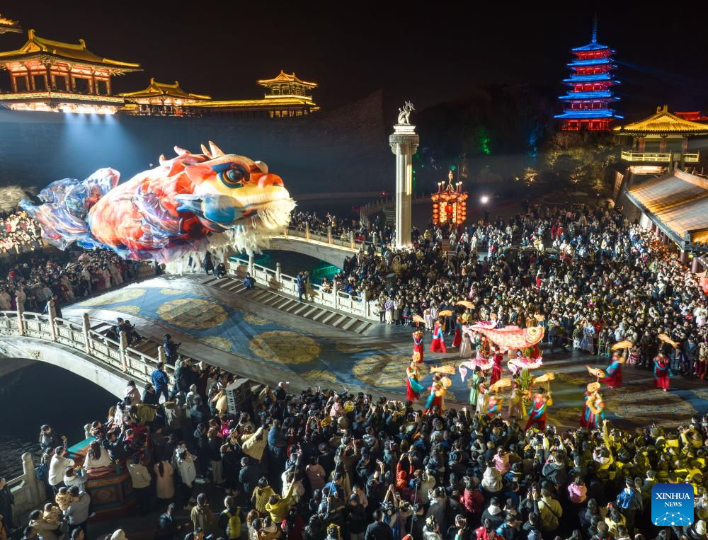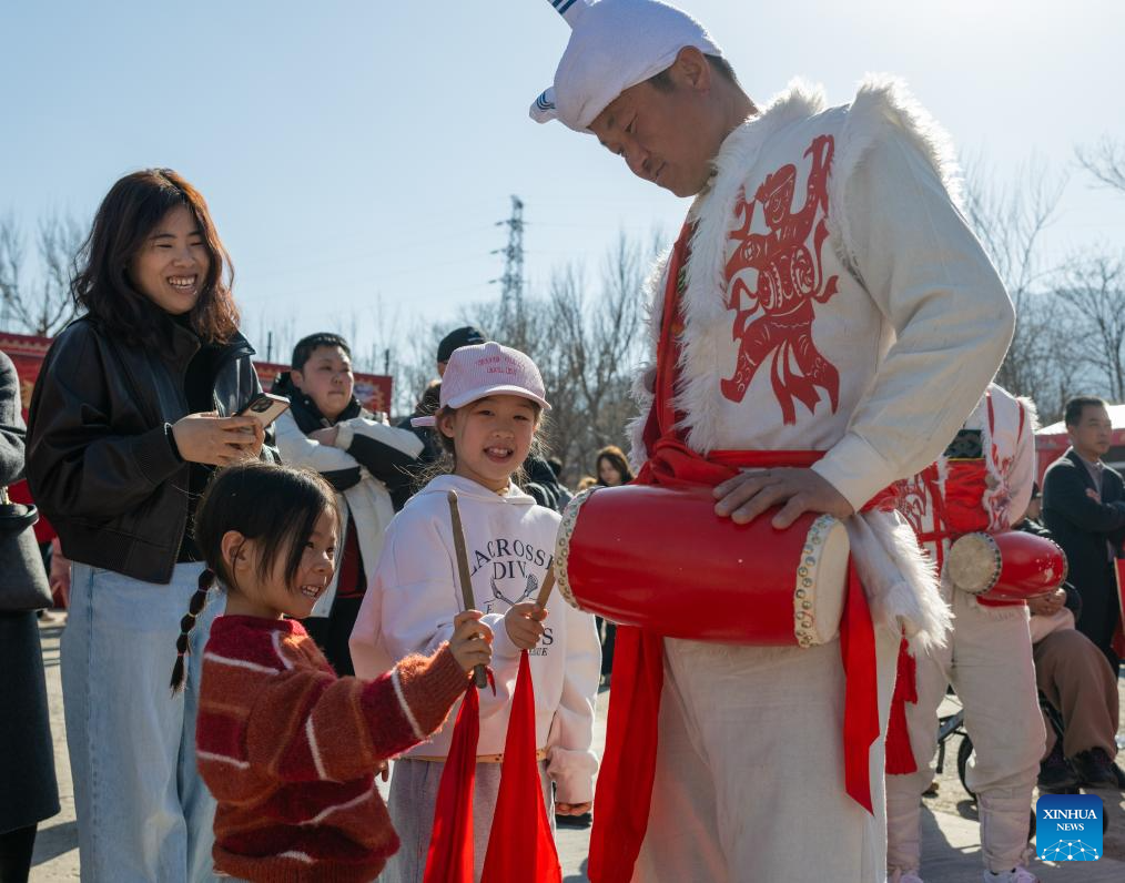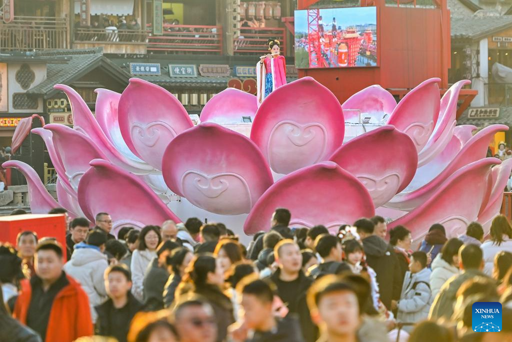 A performance is staged at Hetou ancient street scenic area in Tangshan, north China's Hebei Province, Feb. 19, 2026. China's Ministry of Culture and Tourism launched a month-long cultural and tourism campaign ahead of the Spring Festival, featuring a wide range of activities and promotional measures to better meet people's needs.