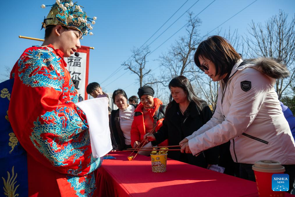 Tourists visit a fair in Haidian District of Beijing, capital of China, Feb. 19, 2026. China's Ministry of Culture and Tourism launched a month-long cultural and tourism campaign ahead of the Spring Festival, featuring a wide range of activities and promotional measures to better meet people's needs.