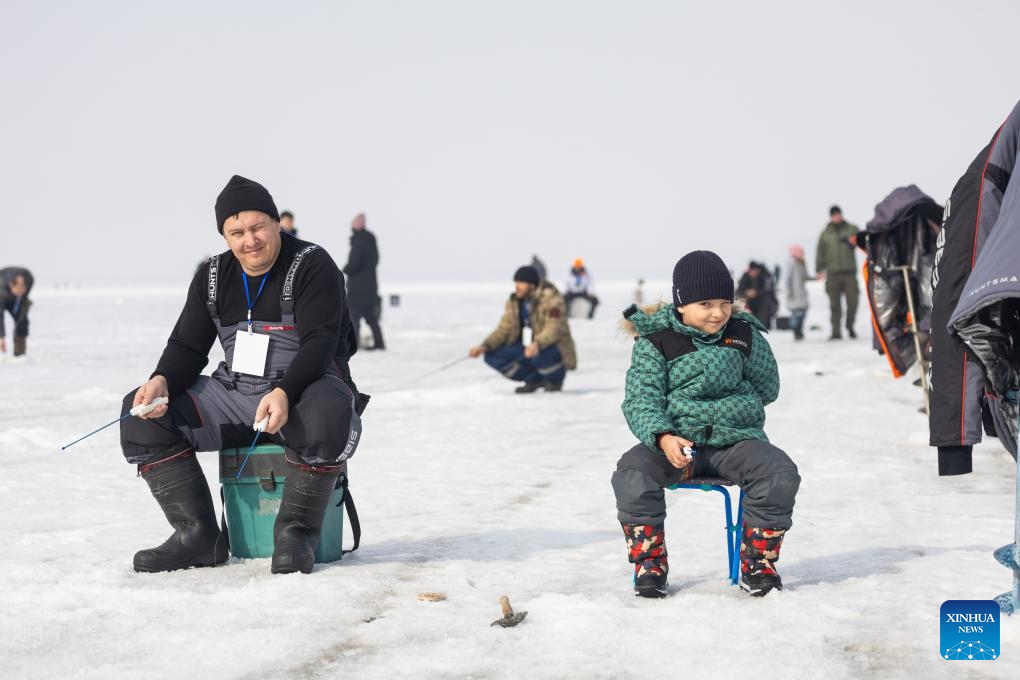People take part in an ice fishing competition in Vladivostok, Russia, Feb. 21, 2026. (Photo by Andrey Matveenko/Xinhua)