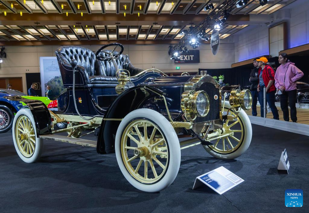 People view a 1906 Russell Model B at the 2026 Canadian International AutoShow (CIAS) in Toronto, Canada, on Feb. 20, 2026. Showcasing a lineup of iconic collector automobiles, the 2026 CIAS runs from Feb. 13 to 22. (Photo by Zou Zheng/Xinhua)
