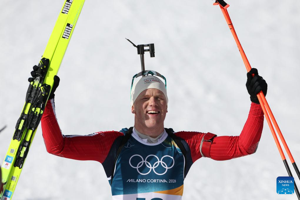 ANTERSELVA, Italy, Feb. 20 (Xinhua) -- Norway's Johannes Dale-Skjevdal claimed gold in the men's 15km mass start at the Milan-Cortina Winter Olympics on Friday, hitting all 20 targets to finish in 39 minutes 17.1 seconds.