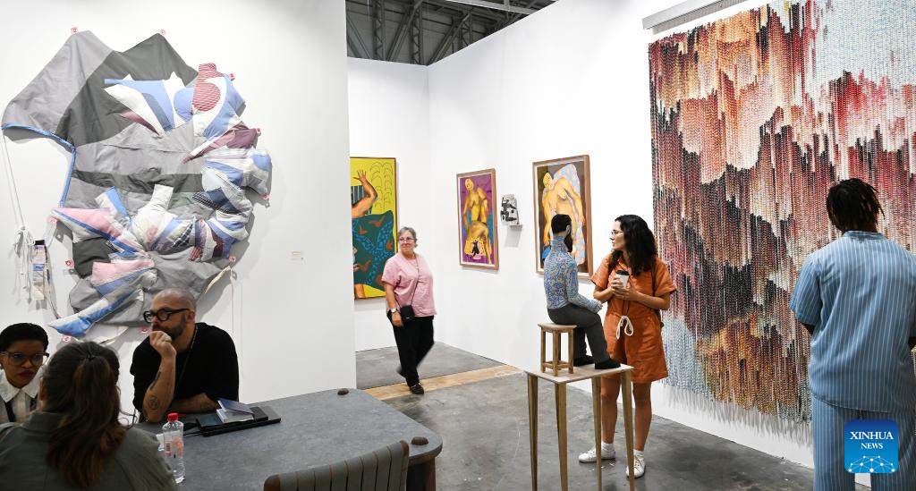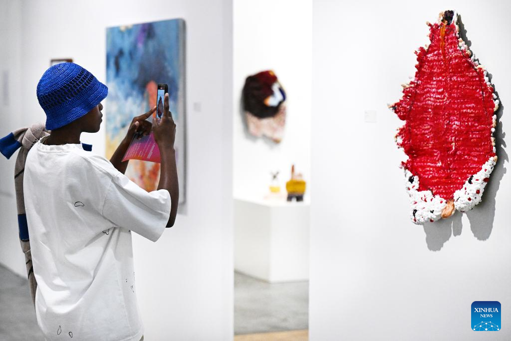 The Cape Town Art Fair 2026 kicked off here on Friday. This year's edition takes place from Feb. 20 to 22 at the Cape Town International Convention Center, featuring 126 exhibitors from 34 global cities and showcasing works by more than 490 artists, with over 30,000 visitors expected. (Photo by Xabiso Mkhabela/Xinhua)