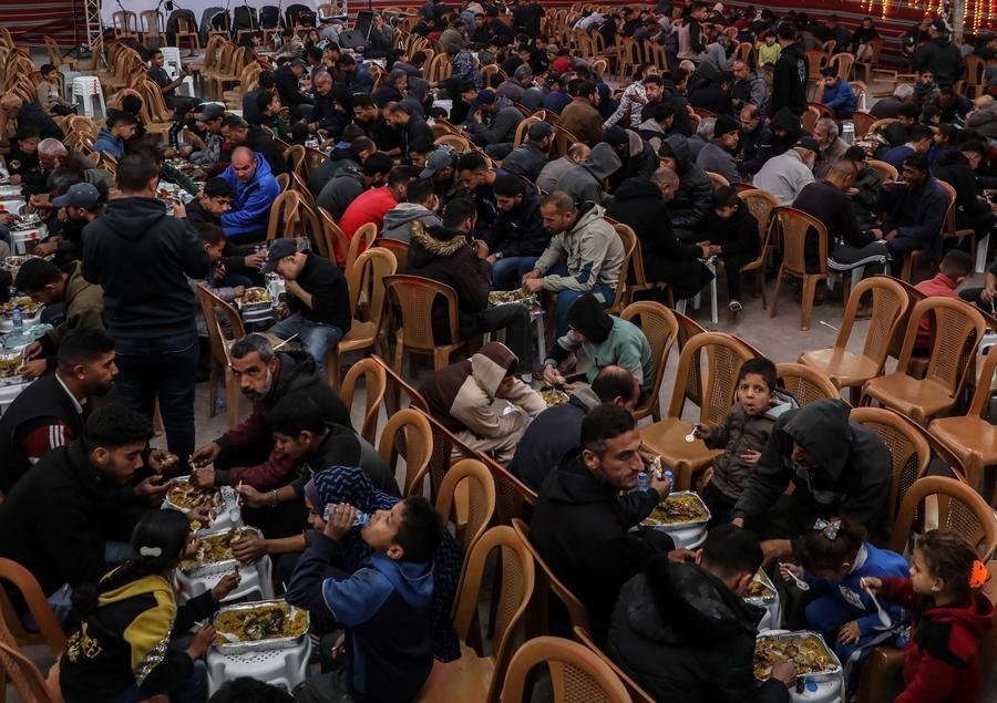 Palestinians prepare traditional sweets to sell on the first day of Ramadan in the city of Nablus in the northern West Bank, on Feb. 18, 2026. (Photo by Nidal Eshtayeh/Xinhua)A young man looks at Ramadan-themed decorations in the old quarter of Damascus, Syria, on Feb. 18, 2026. (Photo by Ammar Safarjalani/Xinhua)Palestinians attend a group meal on the first day of Ramadan inside a school-turned shelter in Beit Lahia, northern Gaza Strip, on Feb. 18, 2026. (Photo by Rizek Abdeljawad/Xinhua)This photo taken on Feb. 19, 2026 shows a fruit stall on the first day of Ramadan in Tunis, Tunisia. (Photo by Adel Ezzine/Xinhua)People eat at a community-led iftar dinner during the holy month of Ramadan in Ankara, Türkiye, Feb. 20, 2026. (Mustafa Kaya/Handout via Xinhua)Worshippers gather for the first Friday prayers of the holy month of Ramadan at the Al-Aqsa Mosque compound in the Old City of Jerusalem, Feb. 20, 2026. (Photo by Jamal Awad/Xinhua)A crescent moon is seen over the Saladin Citadel on the second day of the holy month of Ramadan in Cairo, Egypt, Feb. 20, 2026. (Xinhua/Ahmed Gomaa)■