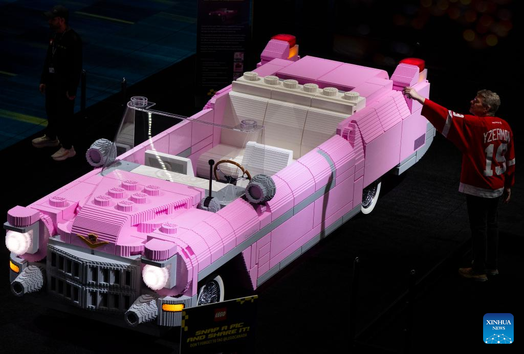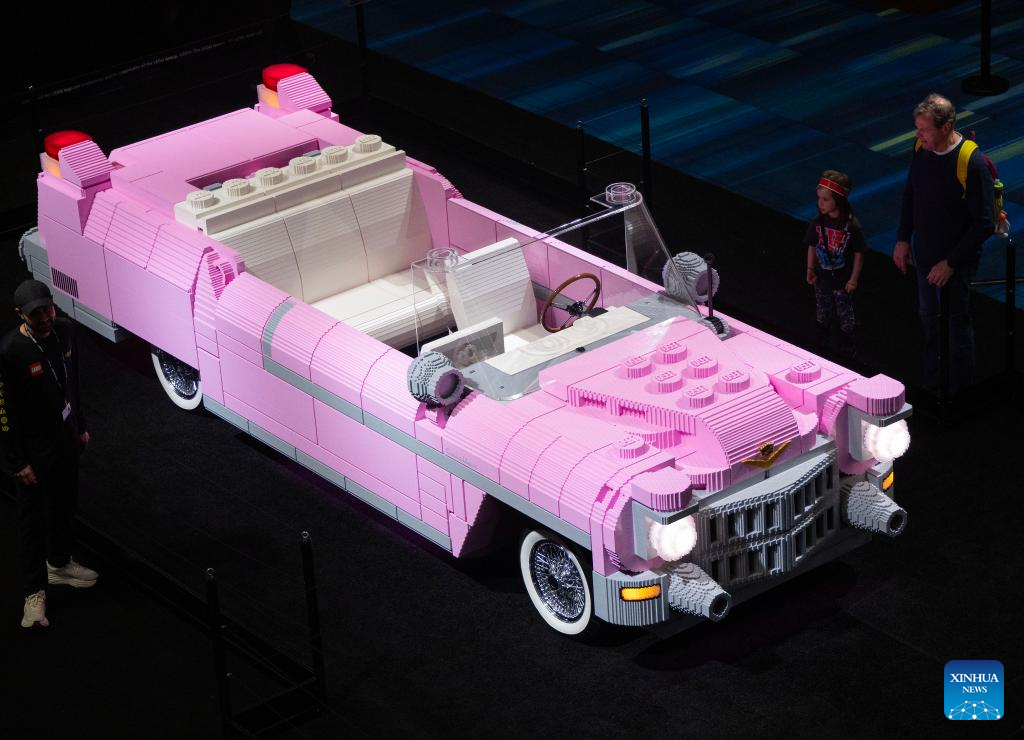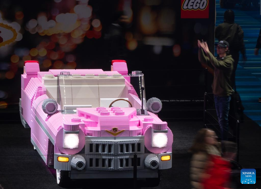 A full-size LEGO 1950s Cadillac convertible is on display at the 2026 Canadian International AutoShow in Toronto, Canada, Feb. 18, 2026. A full-size LEGO 1950s Cadillac convertible, made from over 418,000 bricks, is featured at the 2026 Canadian International AutoShow from February 13 to 22. (Photo by Zou Zheng/Xinhua)