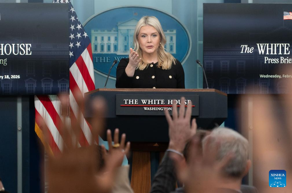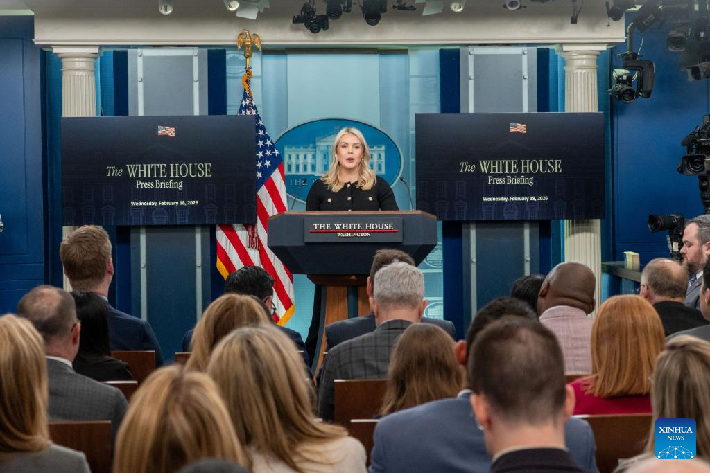 White House Press Secretary Karoline Leavitt speaks during a press briefing at the White House in Washington, D.C., the United States, on Feb. 18, 2026. The White House on Wednesday declined to set a deadline for the U.S.-Iran nuclear talks, saying Tehran is expected to present more details on its negotiating position within weeks. (Photo by Li Yuanqing/Xinhua)