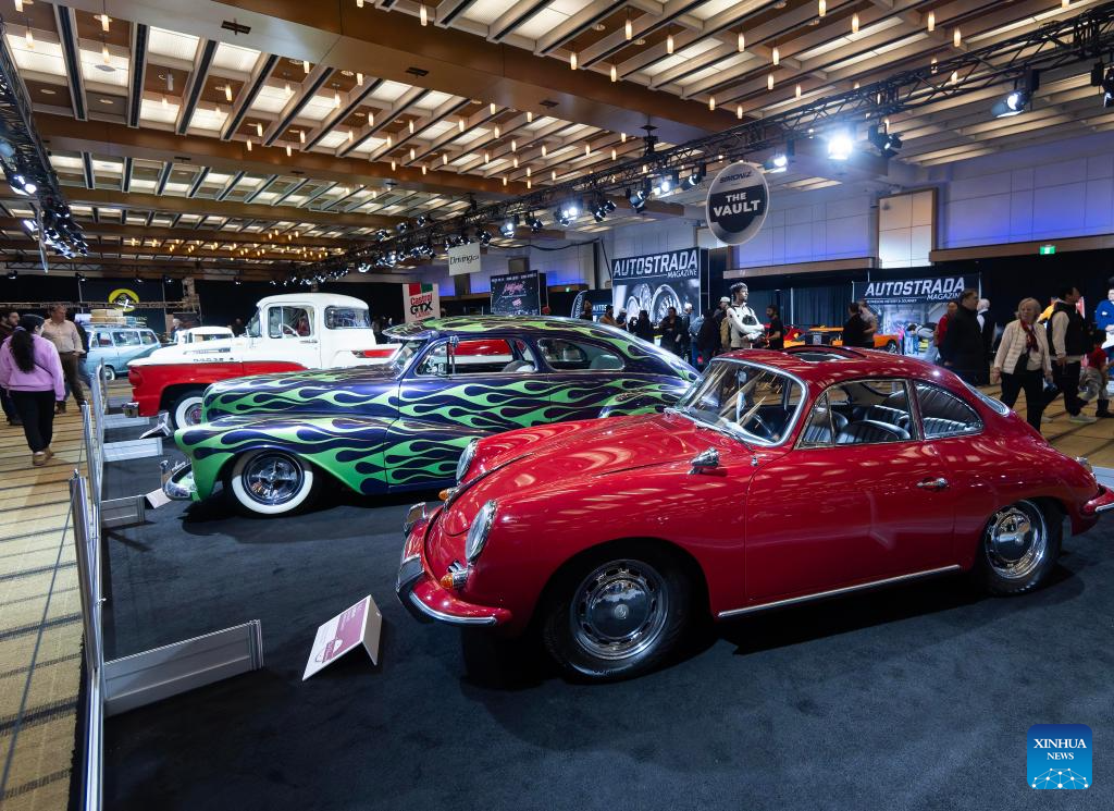 People view vintage cars at the 2026 Canadian International AutoShow (CIAS) in Toronto, Canada, on Feb. 20, 2026. Showcasing a lineup of iconic collector automobiles, the 2026 CIAS runs from Feb. 13 to 22. (Photo by Zou Zheng/Xinhua)