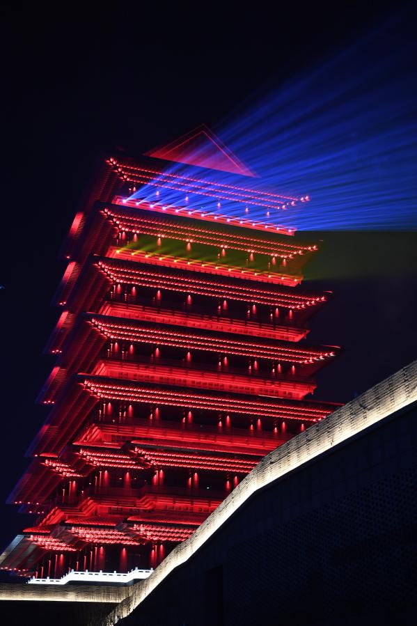 元旦期間,位于甘肅省蘭州市七里河區(qū)的蘭州黃河樓景區(qū)上演《大有蘭州》光影秀,表演分為“源之大河”“金之大城”“民之大韻”“蘭之大州”四個主題篇章,讓游客在黃河之濱感悟黃河文化。