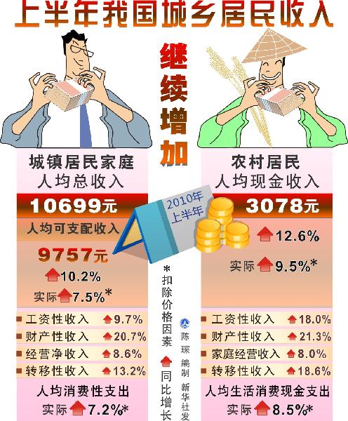 圖表:上半年我國城鄉(xiāng)居民收入繼續(xù)增加