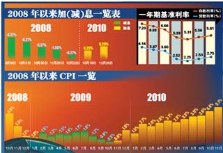 央行選取這個時點加息,不禁讓人聯(lián)系到統(tǒng)計局將于近日公布的1月份CPI,市場普遍預計CPI會超過5%的高點。專家認為,今年央行可能還將有三至四次加息,同時還會繼續(xù)上調(diào)存款準備金率。 [詳細]