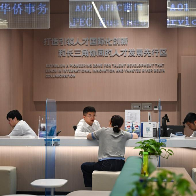 2025年9月10日,市民在上海虹桥国际人才服务中心办事大厅办理业务。新华社记者 陈浩明 摄