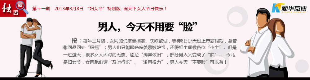 @蘄鄉(xiāng)農(nóng)夫: 在婦女節(jié)到來(lái)之時(shí),向長(zhǎng)期戰(zhàn)斗在試衣間,看韓劇,不做飯,魅力十足并掌握另一半錢包的杰出女性們致以節(jié)日的問(wèn)候。祝所有美女們:三圍魔鬼化,收入白領(lǐng)化,家務(wù)甩手化,快樂(lè)日?;?,愛(ài)情持久化,情調(diào)小資化,購(gòu)物瘋狂化,老公奴隸化,祝三八婦女節(jié)快樂(lè)!