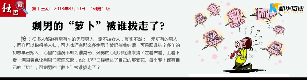 @稻草人:你嫁,或者不嫁人;你媽總在那里,忽悲忽喜;你剩,或者不剩下,青春總在那里,不來只去;你挑,或者不挑剔;貨就那么幾個,不增只減;你認,或者不認命;愛情總得忘記,不舍也棄;來剩男的懷里,或者,讓剩男住進你心里。