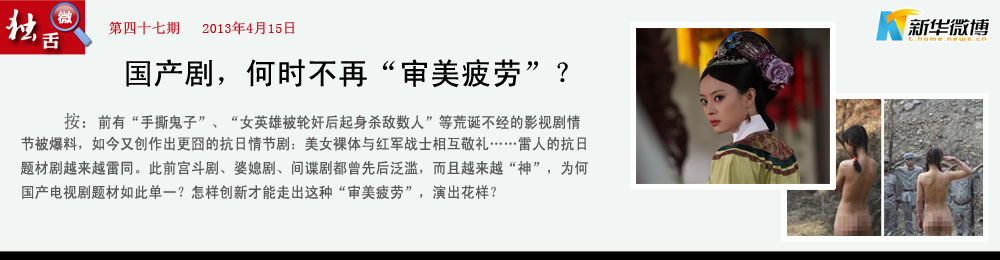 【別做急功近利的炮灰】 我國(guó)電視劇近些年來(lái)年產(chǎn)量高達(dá)近兩萬(wàn)集,但有幸能上熒屏的不過(guò)八九千集。歷史劇缺乏正氣,年代劇缺乏神氣,當(dāng)代劇缺乏地氣,我們的探索缺乏勇氣。