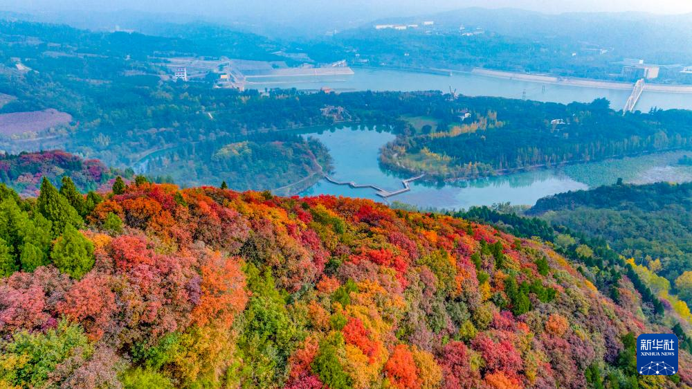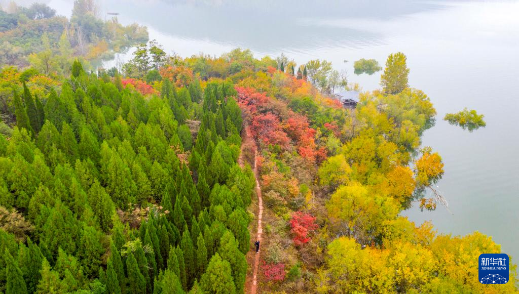 10月28日在黄河小浪底水利枢纽风景区附近拍摄的秋景(无人机照片)。