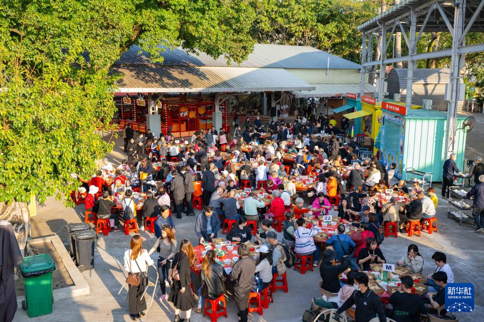 2月13日,人们在妈阁塘片区“迎新春盆菜宴”上品尝美食。新华社发(张金加 摄)
