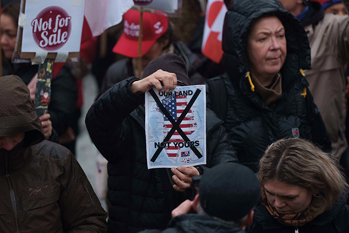 2026年1月17日,在丹麦自治领地格陵兰岛首府努克,一名男子在示威游行中手举一张划掉美国国旗的格陵兰岛地图