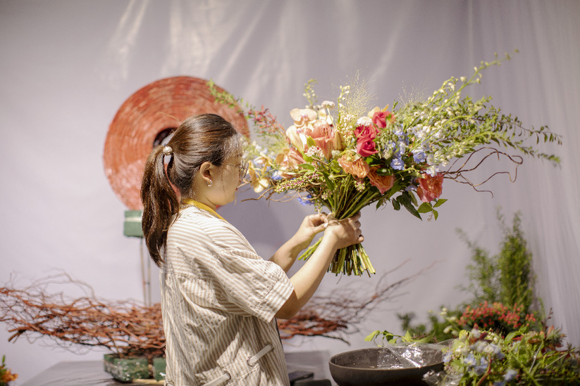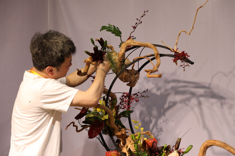 “輕攏慢捻抹復(fù)挑,插花也如琵琶語(yǔ)?!庇浾咴诂F(xiàn)場(chǎng)看到,選手們沉浸在插花藝術(shù)創(chuàng)作中,鮮花、枝葉在他們的手中經(jīng)過一番規(guī)整修剪,又如繪畫般慎重落下一抹畫筆,嬌艷綻放的鮮花在新的布局下,逐漸呈現(xiàn)出定格的自然之美、線條之美與意境之美,花藝設(shè)計(jì)本身的創(chuàng)作過程,就是一場(chǎng)賞心悅目的藝術(shù)呈現(xiàn),人和花交流的過程,也會(huì)讓人們更加能夠體會(huì)到生命的真實(shí)與絢爛。