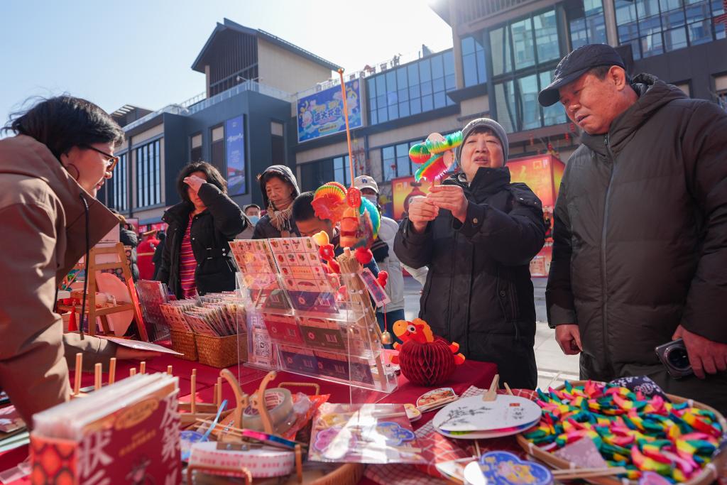 随着春节临近,在北京隆福寺街区,以“马不停蹄,隆福潮集”为主题的2026隆福寺新春市集吸引越来越多的游客前来游览和购物。