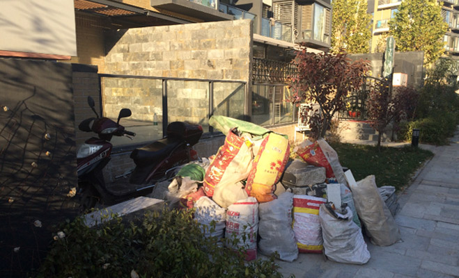 在記者走訪的首開集團(tuán)開發(fā)的項(xiàng)目中,最突出的問題是垃圾的處理。在走訪首開常青藤、首開知語城、首開國風(fēng)上觀、首開石榴派時(shí),記者在小區(qū)內(nèi)部看到,建筑垃圾、裝修垃圾堆放數(shù)量多且時(shí)間長。業(yè)主普遍反映物業(yè)工作人員處理業(yè)主反映的問題并不積極。