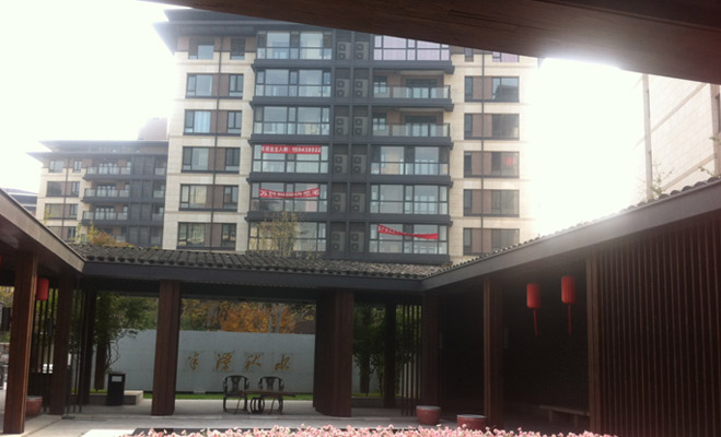 記者進(jìn)入萬(wàn)科五礦如園南區(qū),首先被吸引的是入堂口的“半潭秋水”。庭院中一潭水池,而水池旁還設(shè)有一臺(tái)古琴,頗有幾分韻味。再往小區(qū)內(nèi)進(jìn)入,還有一片小竹林。據(jù)了解,如園共有十六個(gè)院落,分別以春夏秋冬、琴棋書(shū)畫(huà)、風(fēng)華雪月、梅蘭竹菊中的十六個(gè)字作為主題。