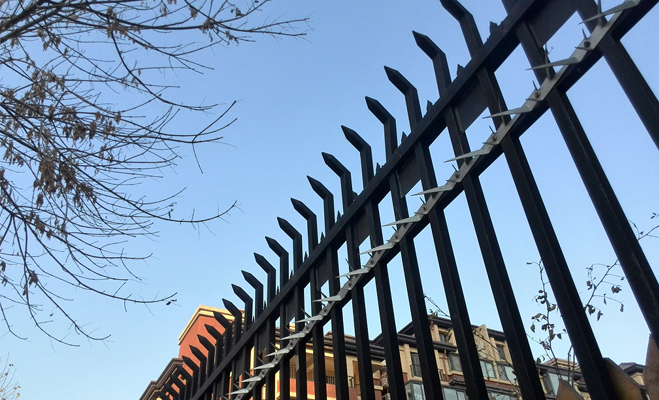 保安對(duì)小區(qū)進(jìn)行24小時(shí)巡視,并配有防暴鋼叉等安防裝備。小區(qū)的圍墻柵欄設(shè)有金屬刺,具有較強(qiáng)的防攀爬功能。小區(qū)實(shí)現(xiàn)了嚴(yán)格的人車(chē)分流。