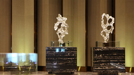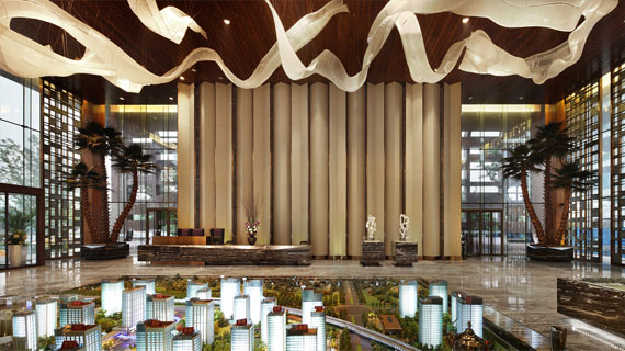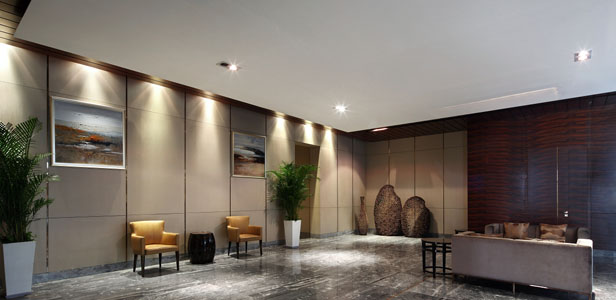 該項目還突破了傳統(tǒng)的單一大堂配置,運(yùn)用“多功能三進(jìn)式大堂”設(shè)計,從社區(qū)、首層到地下,層層遞進(jìn)。其中社區(qū)門口大堂擁有400平方米,9米挑高,同時設(shè)有高科技門禁裝置,保證了安全性和私密性;7米挑高的室內(nèi)入戶大堂專配24小時私屬管家;地下的車庫大堂更是使用全石材鋪裝。