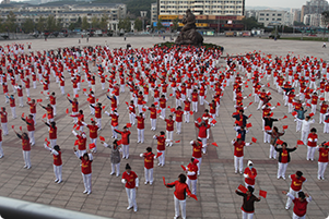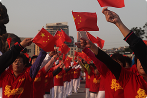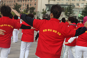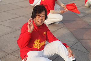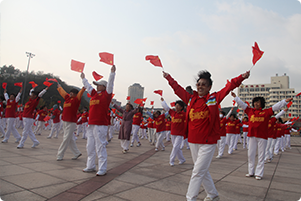 阿姨們手揮小國(guó)旗獻(xiàn)禮國(guó)慶節(jié) |